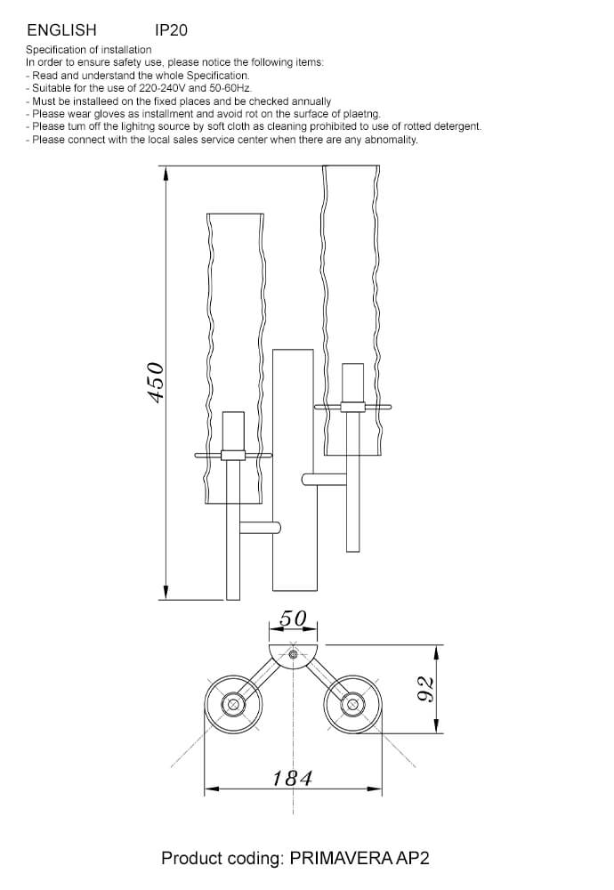 Бра Crystal Lux Primavera AP2 Gold