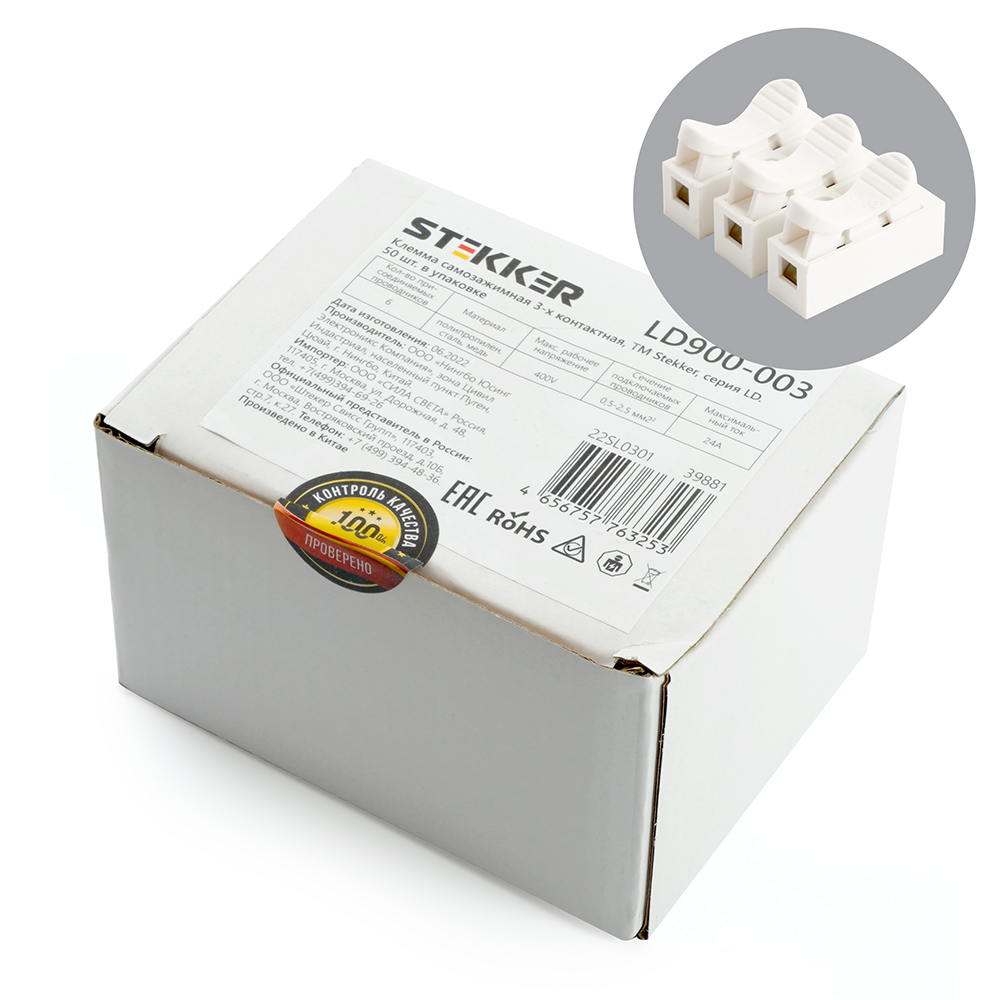 Клемма самозажимная 3-х контактная STEKKER, LD900-003
