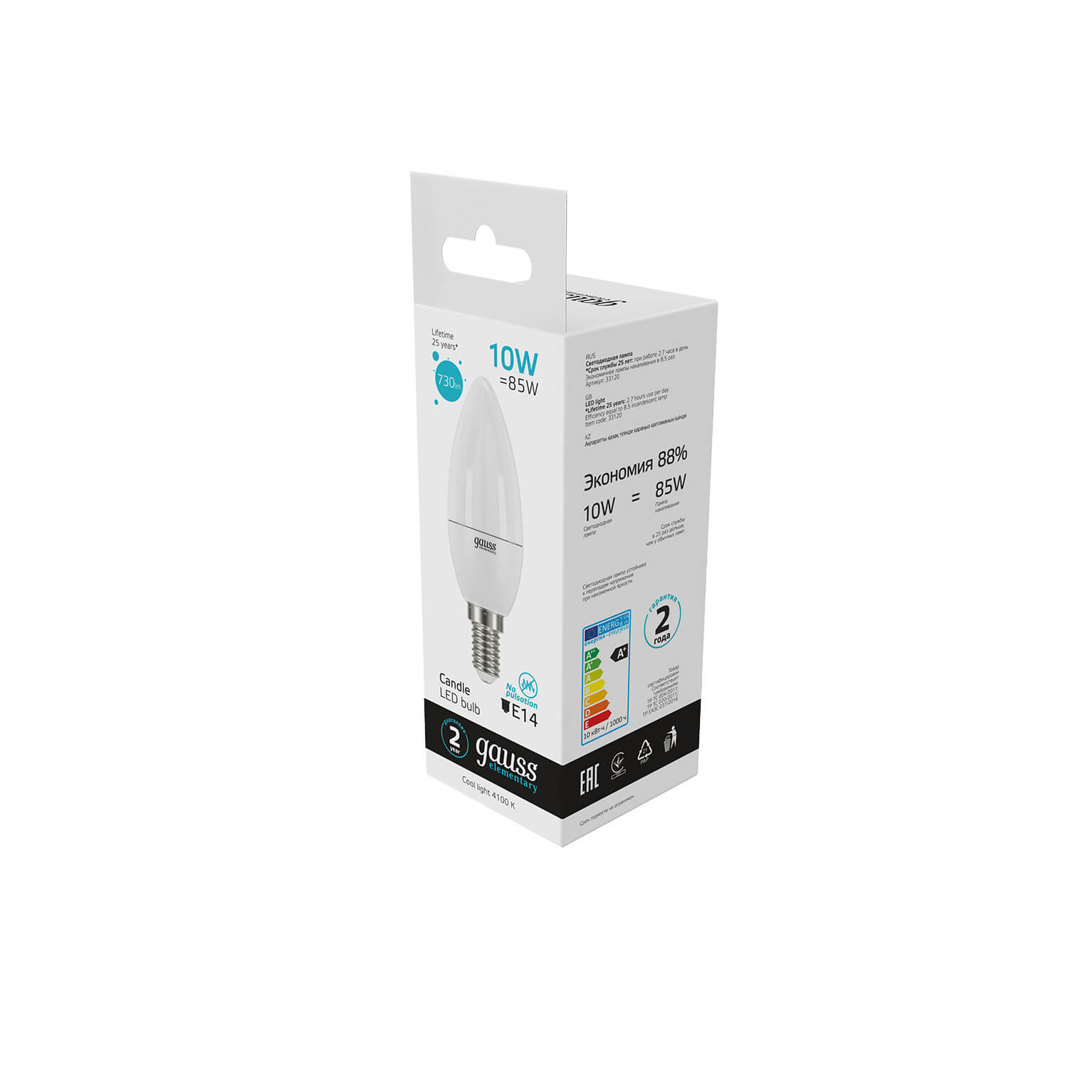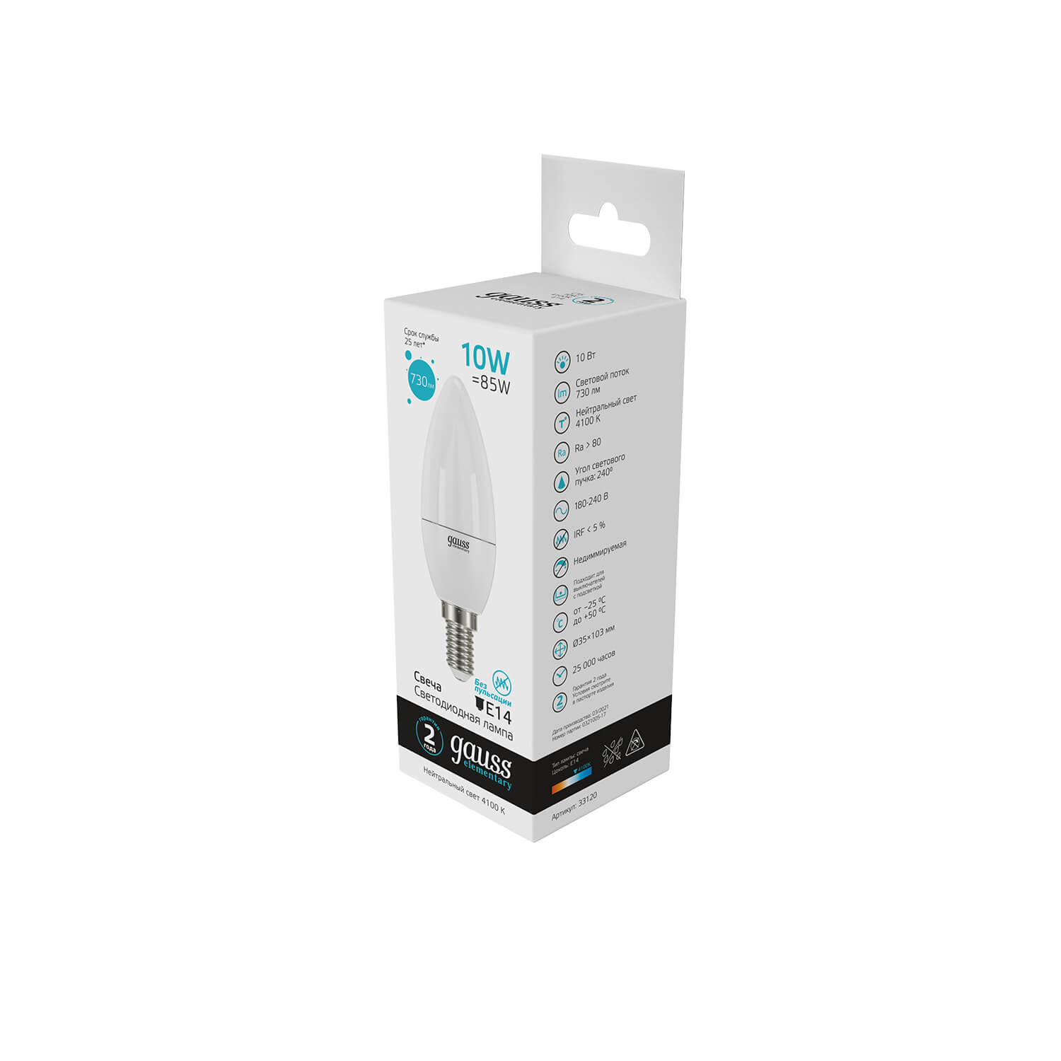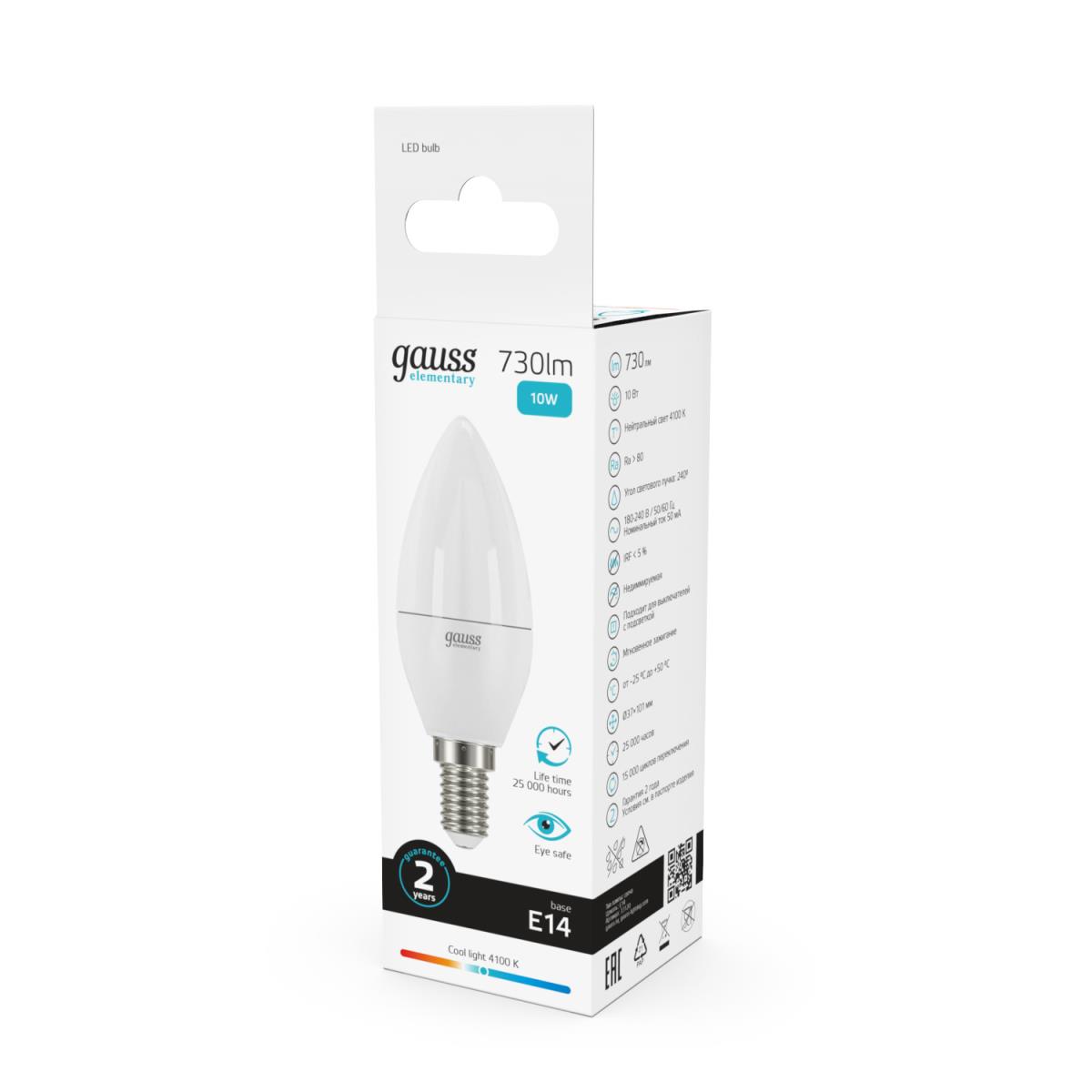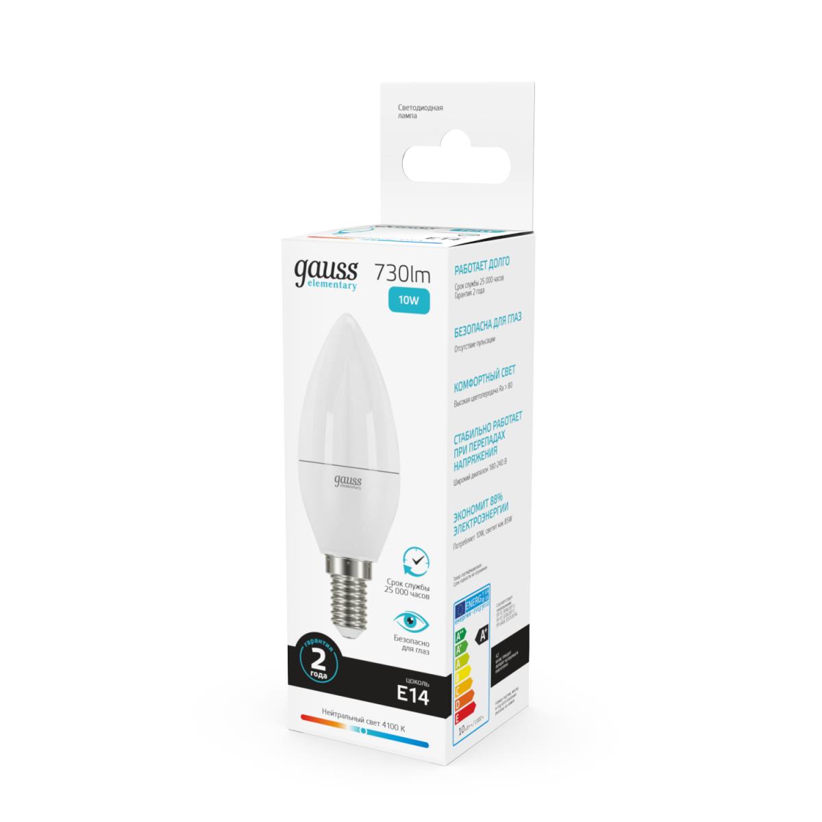 Лампа светодиодная Gauss E14 10W 4100K матовая 33120