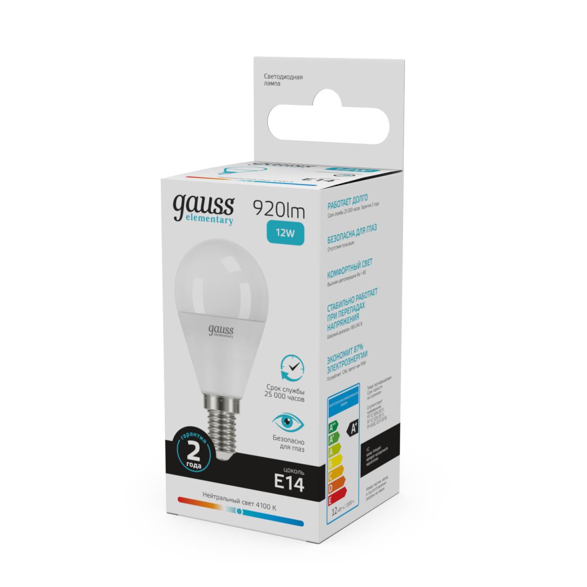 Лампа светодиодная Gauss E14 12W 4100K матовая 53122