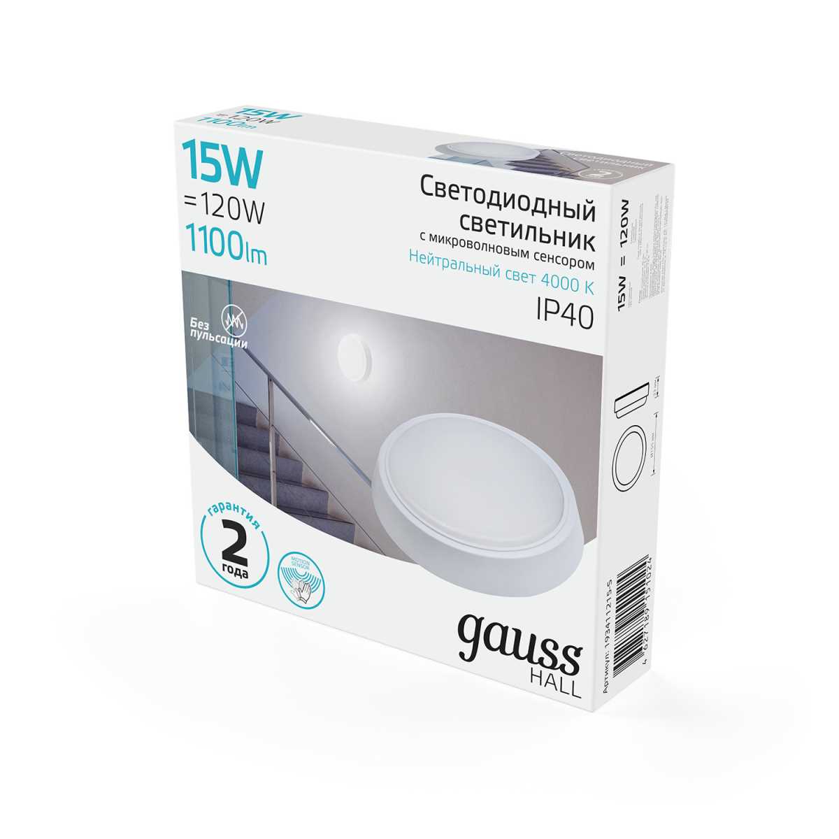 Настенно-потолочный светодиодный светильник Gauss Hall 193411215