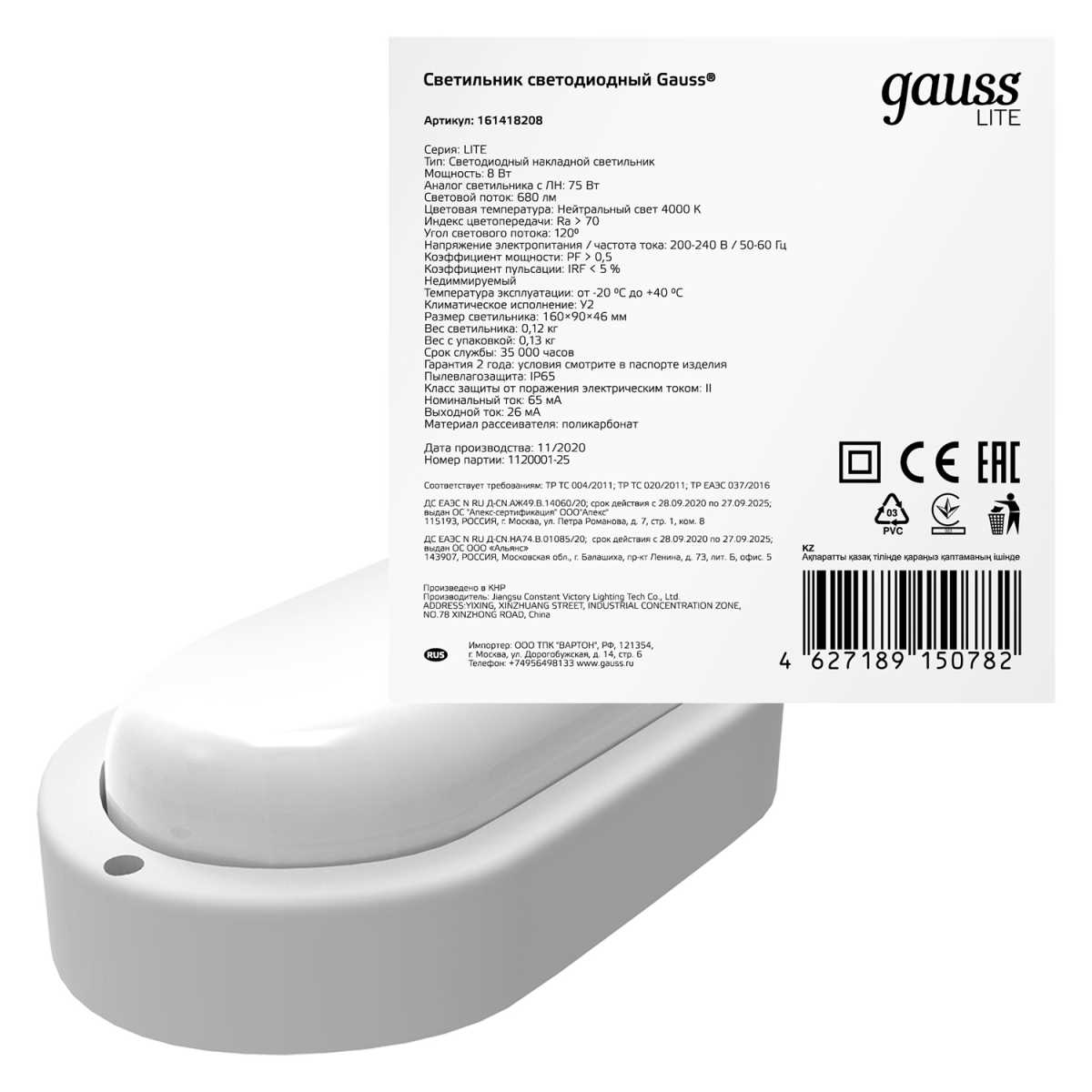 Настенно-потолочный светодиодный светильник Gauss Lite 161418208
