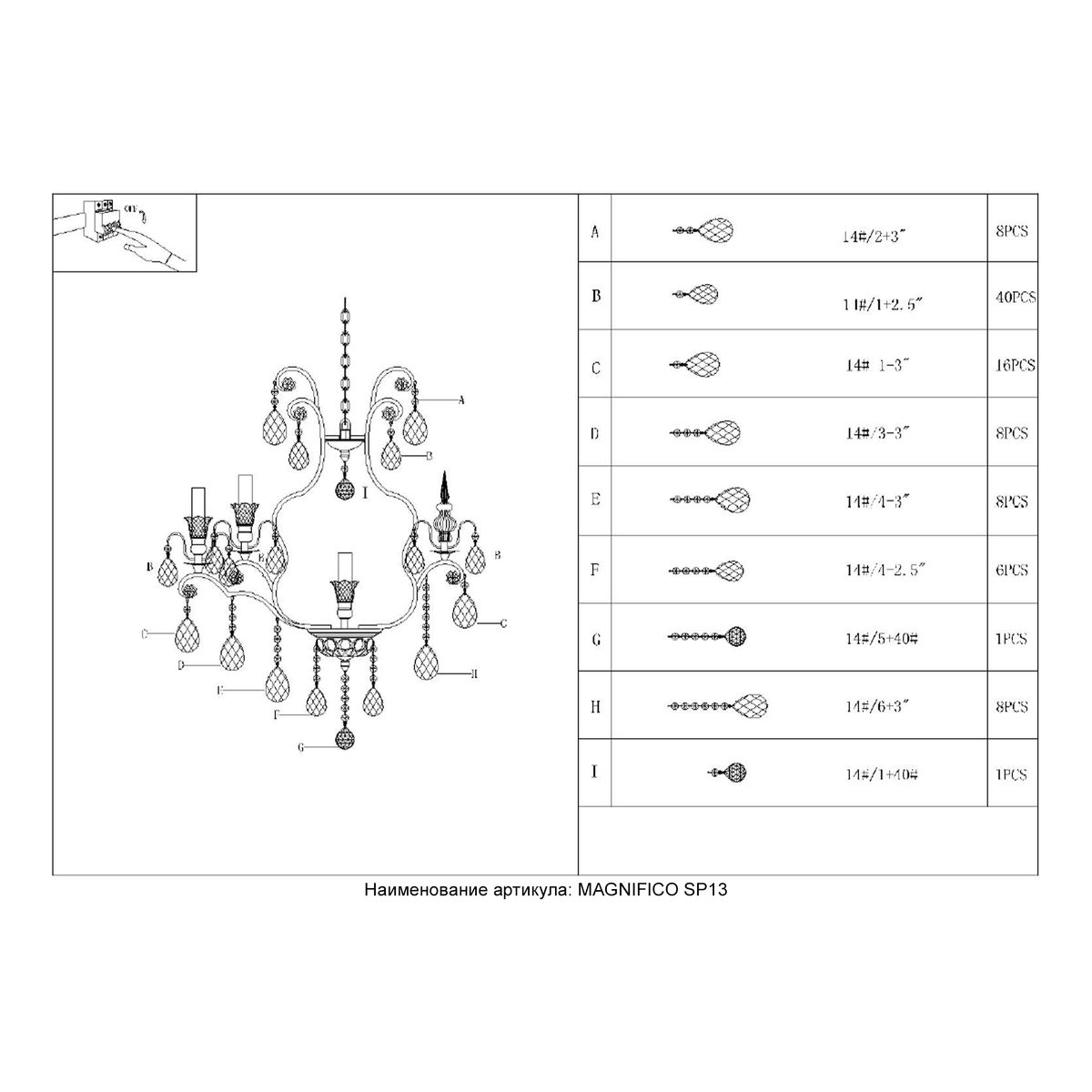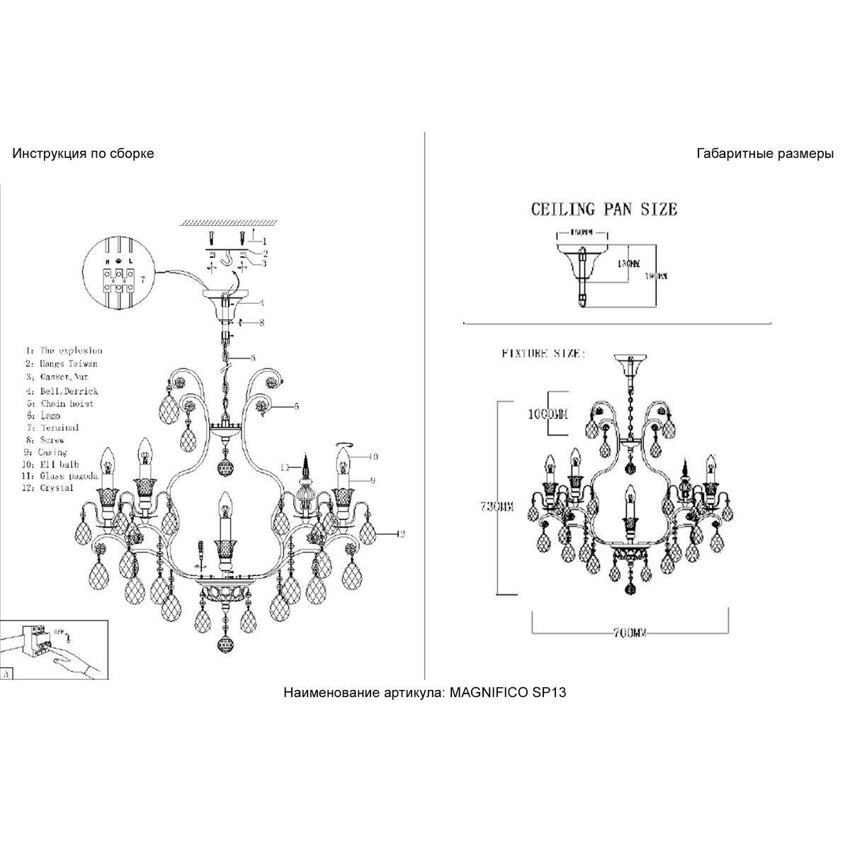 Подвесная люстра Crystal Lux Magnifico SP13 Black/Transparent