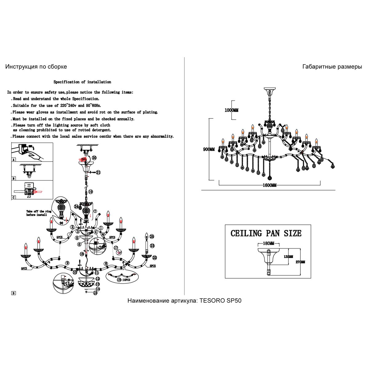 Подвесная люстра Crystal Lux Tesoro SP50