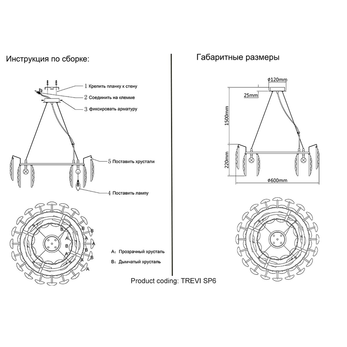 Подвесная люстра Crystal Lux Trevi SP6 Brass