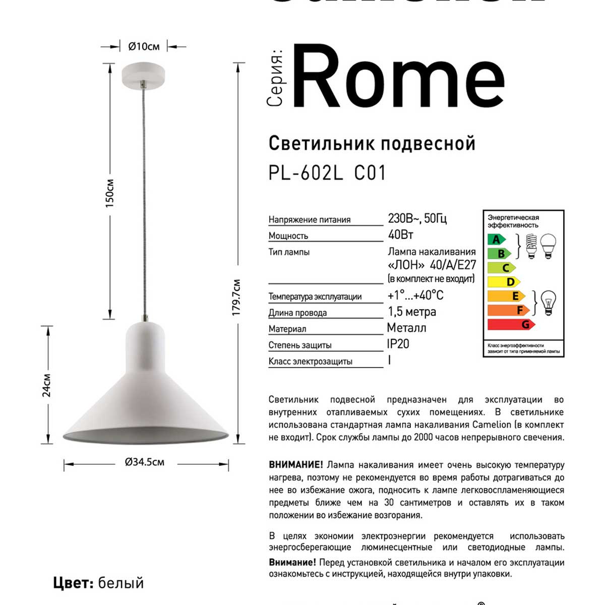 Подвесной светильник Camelion PL-602L C01 14556