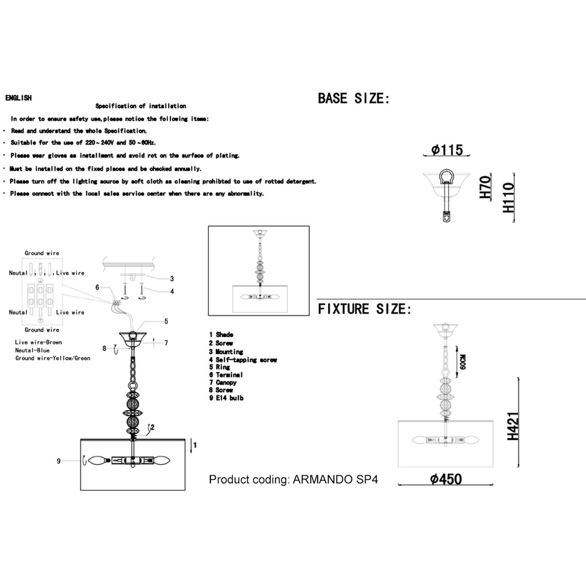 Подвесной светильник Crystal Lux Armando SP4 Chrome