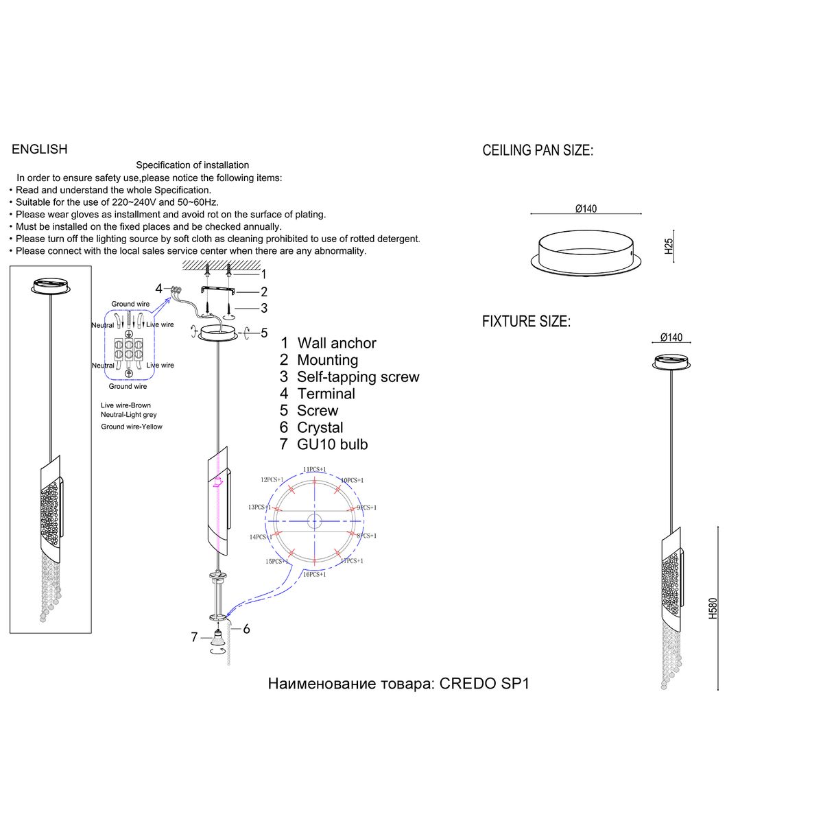 Подвесной светильник Crystal Lux Credo SP1 Gold