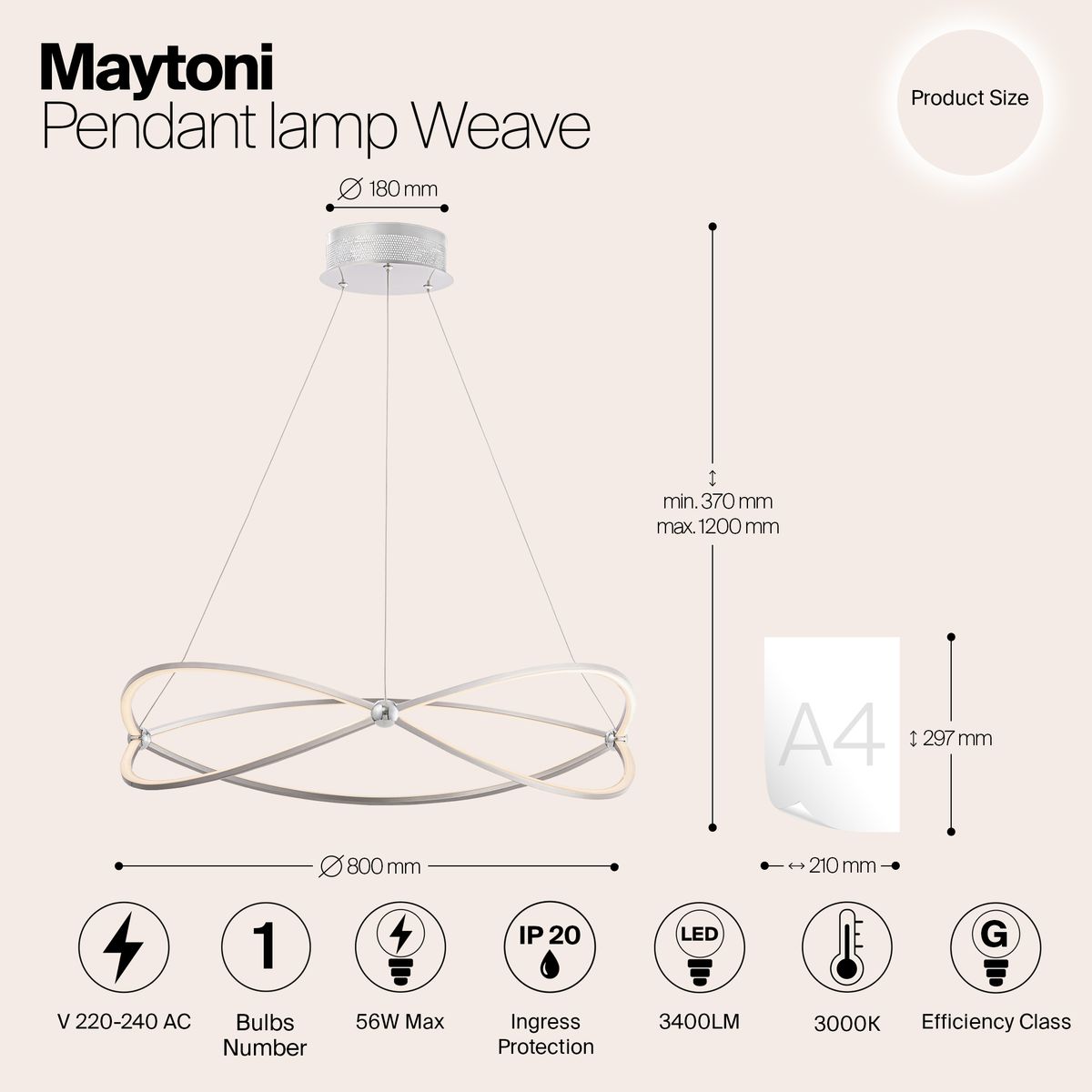 Подвесной светодиодный светильник Maytoni Weave MOD062PL-L56CH3K