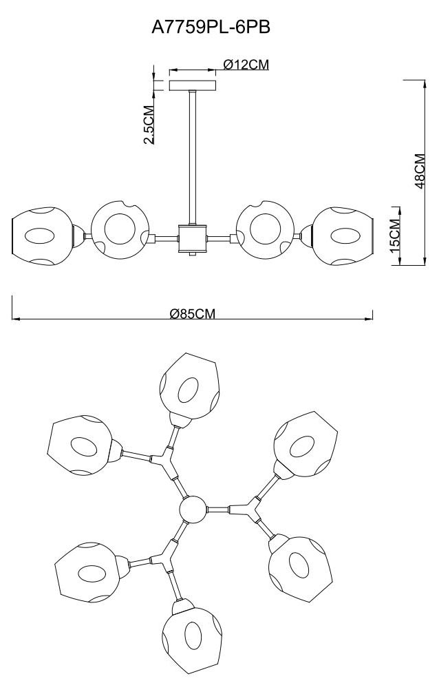 Потолочная люстра Arte Lamp Yuka Smoky A7759PL-6PB