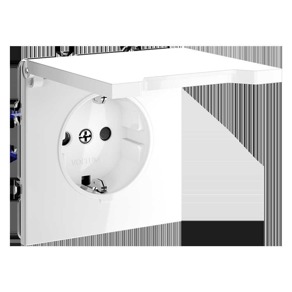 Розетка встраиваемая Voltum S70 с заземлением, защитными шторками и крышкой 16А, (белый глянцевый) VLS040301
