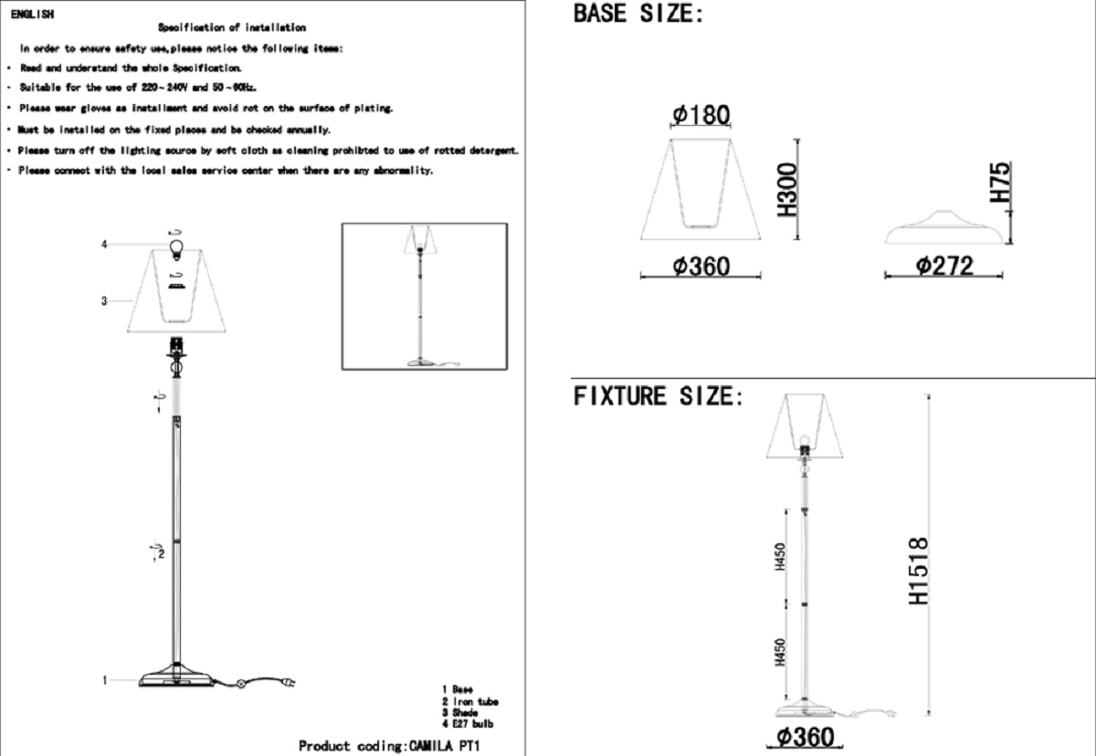 Торшер Crystal Lux Camila PT1 Gold