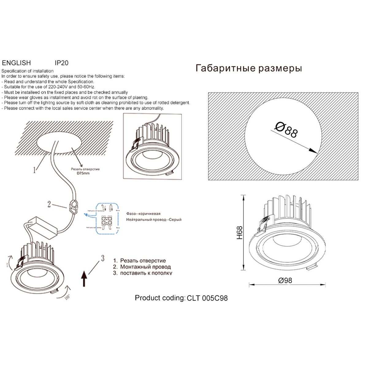 Встраиваемый светильник Crystal Lux CLT 005C98 BL