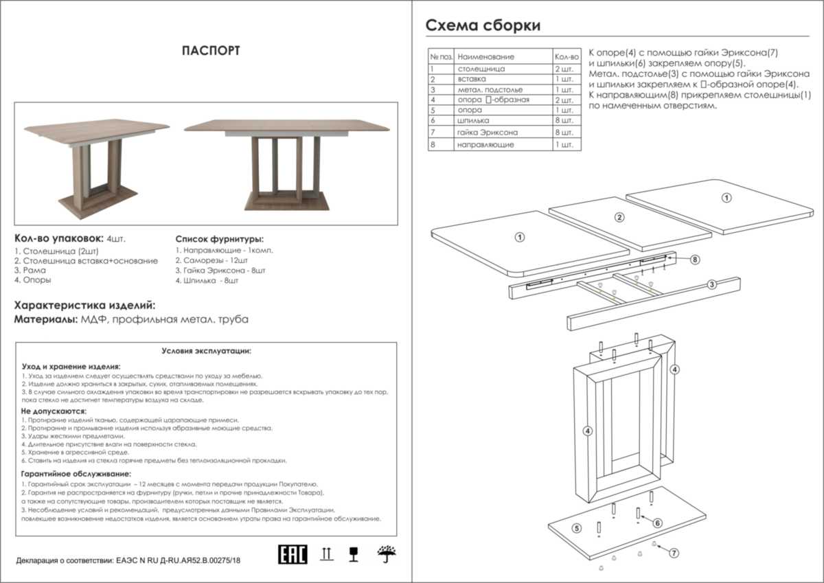 Конструкция стола