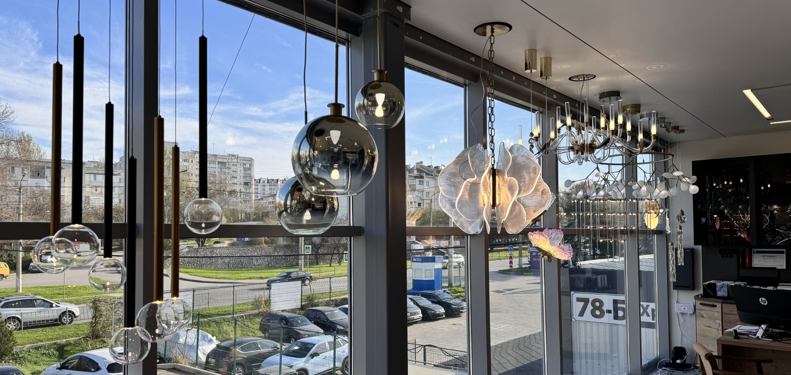Большой салон отделочных материалов, мебели и света хорошо заметно с дороги. Вблизи заправки Атан и ТЭС. Возле салона есть парковочная зона.